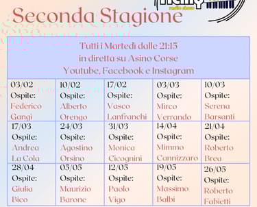 Lo show sarà trasmesso online sulle piattaforme social YouTube, Instagram e Facebook Live, sui canali di “Asino Corse” rimanendo disponibile anche in differita per permettere a tutti di seguirlo in qualsiasi momento. Inoltre, sarà possibile assistere alle puntate anche dal vivo con pubblico presso il locale/ludoteca NPG di Arma di Taggia, in Via della Stazione 149, trasformando la trasmissione in un vero momento di incontro per la community.